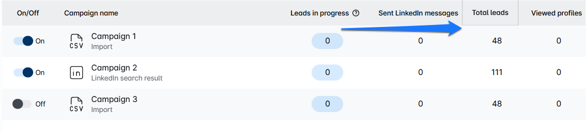Now, simply click on each data widget (e.g., Total leads, Viewed profiles, Sent connections...) and drag it to the spot where you want it displayed. Place the most important info on the left, with less important data moving toward the right