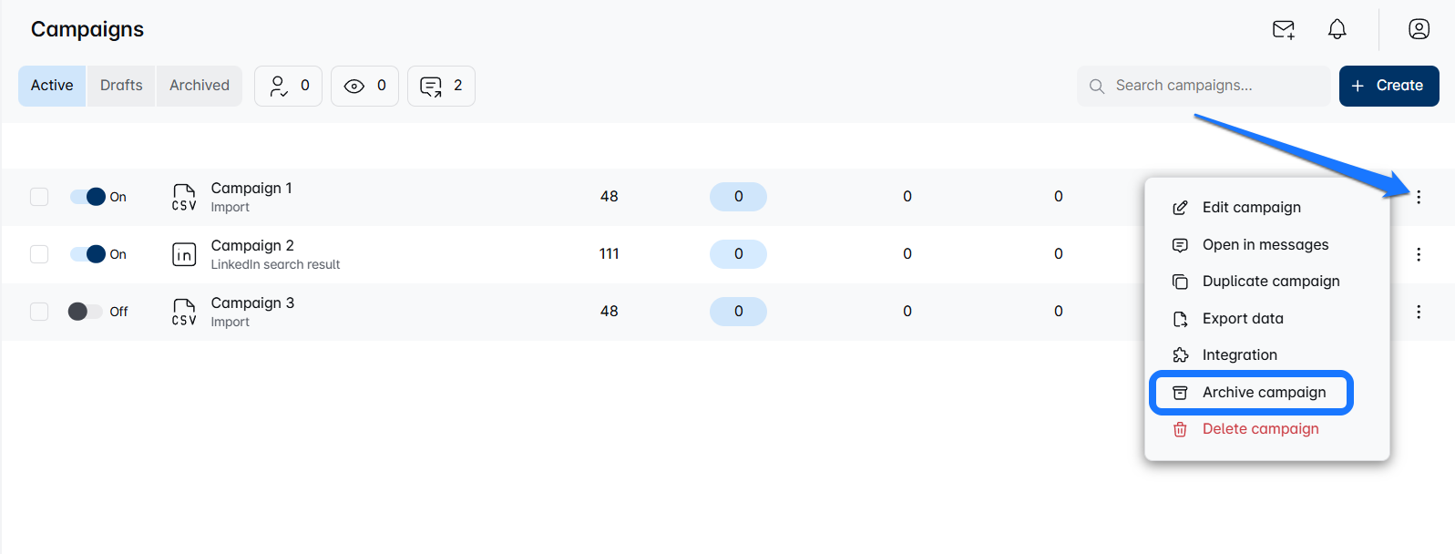 3. Select "Archive Campaign"