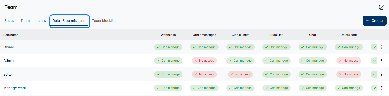 This section gives you a quick look at the basic roles like owner, admin, and editor, plus any custom roles you’ve created.