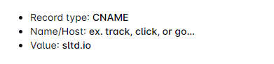 - Since we’re creating a subdomain, you need to use the prefix you’ve created (e.g., track, click, go, etc.) and paste it into Luna Bella Media under the Your subdomain field.